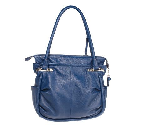 A touch of designer whimsy makes this luxurious glove leather bag something special. Ruching on the body adds interest and movement, while a spacious interior and exterior pockets allow you to keep all of your must-haves at your fingertips. From B. Makowsky.