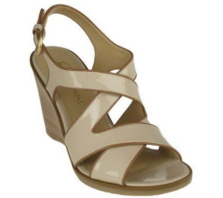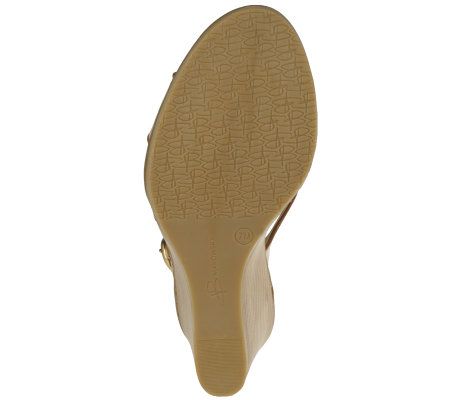 B. Makowsky Leather Multi-Strap Wedge Sandal w/ Adj. Buckle
