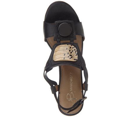 B. Makowsky Leather Sandals with Stone Detail & Adj. Backstrap