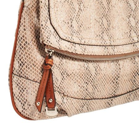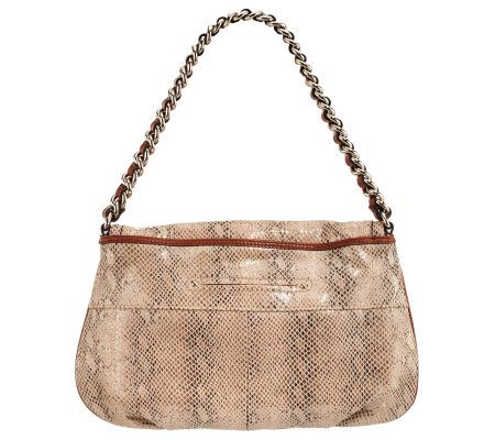 Dress it up. With a chain detail, foldover pocket, animal print, and classic shape, this shoulder bag has a sophisticated look that works for day or night. From B. Makowsky.