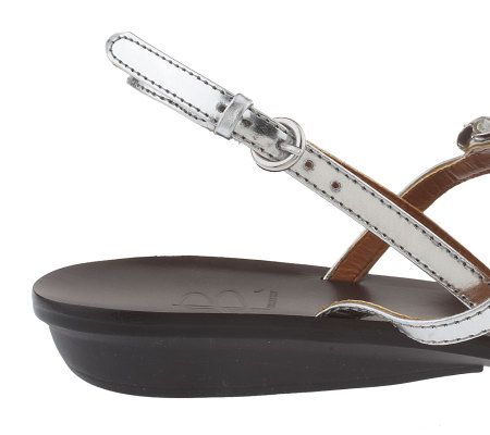 From heel to toe, these leather thong sandals dress up your warm-weather wardrobe. Stone details captivate with a look of luxury. And an adjustable ankle strap provides a perfect fit. From B. Makowsky.