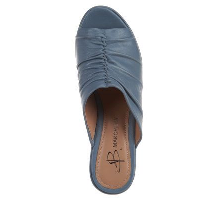 B. Makowsky Serene Leather Ruched Wedge Slides