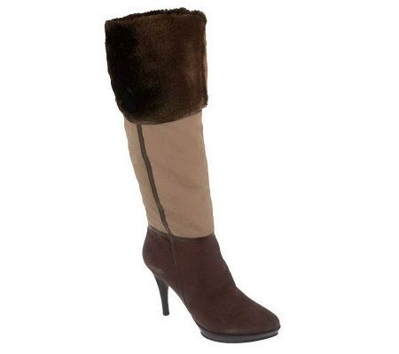 B. Makowsky Suede Boots with Faux Fur Detail
