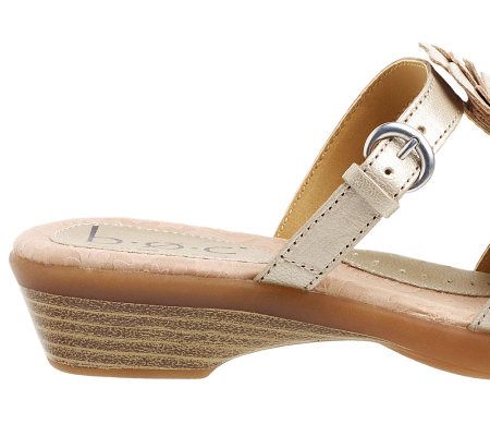 Tread lightly. The comfort footbed doesn't just cushion your feet, it provides superior support with extra padding at the heel and arch, while a textured outsole helps to keep you stable. And, don't worry about walking across grass. Unlike pesky, pointy heels which sink into the ground, these sandals have a wide 1-1/4"H heel that helps you glide gracefully from graduations to garden parties. A collection of neutral colors or light, summer-ready shades wrap your feet in unmatched style.