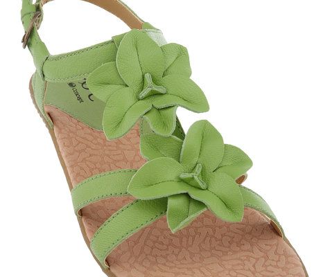 Tropical-inspired design. Two flower details on the vamp add sun-sational style to skirts, capris, and dresses. Choose a neutral shade to complement virtually everything in your existing wardrobe. Or go bold with a pop color, and add instant oomph to your favorite ensembles.