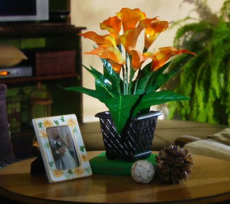 A beautiful way to decorate for spring--and to keep out during the times when you're longing for spring. Eight lifelike calla lily blooms are planted within a bronzetone pot topped with realistic greenery to create this vibrant arrangement. Each bloom glows with an LED light, which can be set to glow for six hours each day! From Bethlehem Lights.