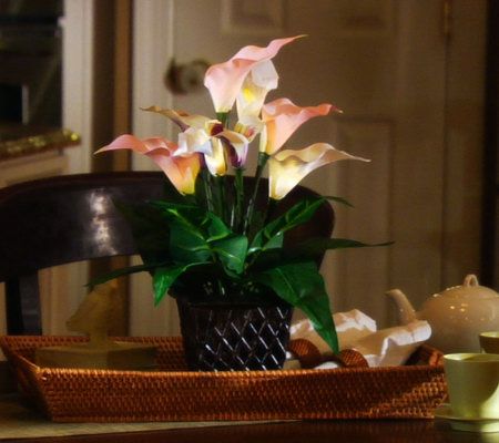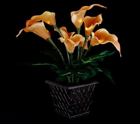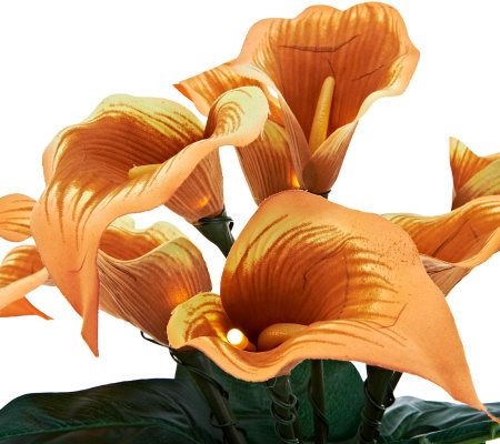 Eight lifelike calla lily blooms lit with LED light