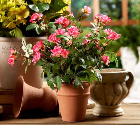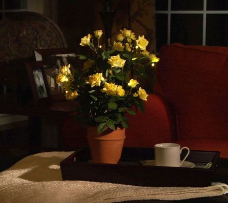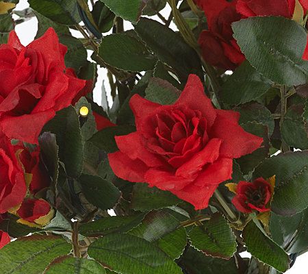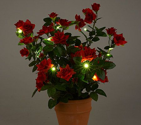 Set the stage for summer romance with this lifelike bush of soft, natural-looking rose blossoms. The radiant blooms, presented in a terra cotta pot detailed with faux moss at the top, are beautifully illuminated with ten LED lights. From Bethlehem Lights.
