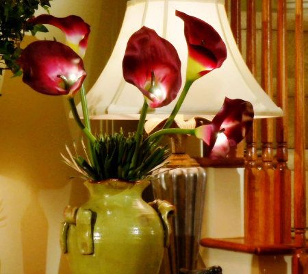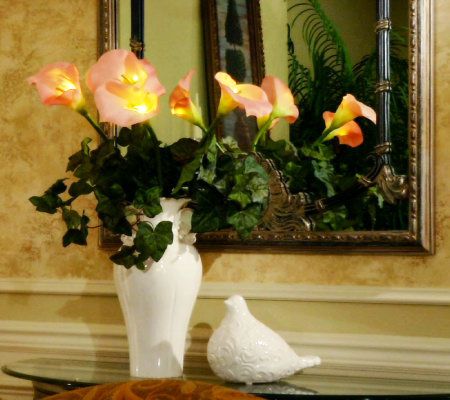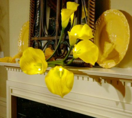Spring is in the air--and in your home. Five jumbo calla lilies come together to create a full, realistic arrangement that really sparkles. Captivating atop their long green stems, these faux calla lilies add elegance to any space. From Bethlehem Lights.