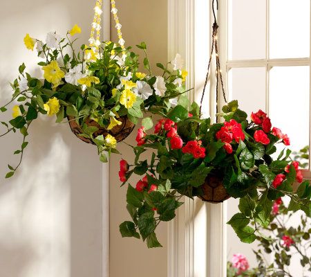 Spring is in the air. This versatile hanging basket brightens up any space, in more ways than one. The colorful, realistic begonias in the basket are a cheerful addition to your seasonal decor during the day. At night, the chain comes to life with 24 LED lights that can be placed on a timer and have a steady, flashing, or phasing function. Place it on a table or hang it inside or out for a fresh, sparkling look. From Bethlehem Lights.