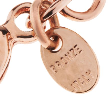 A lesson in chic contrast. Round, faceted black spinel gemstones set in bright, perfectly polished, rose-colored bronze showcase a stunning strand design. From the Bronzo Italia(R) Jewelry Collection.