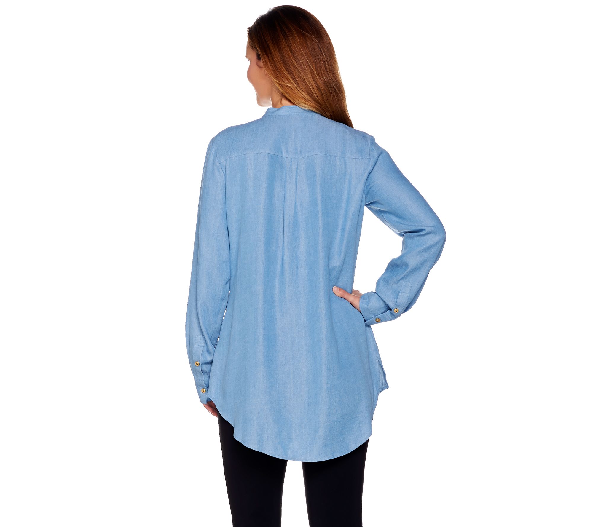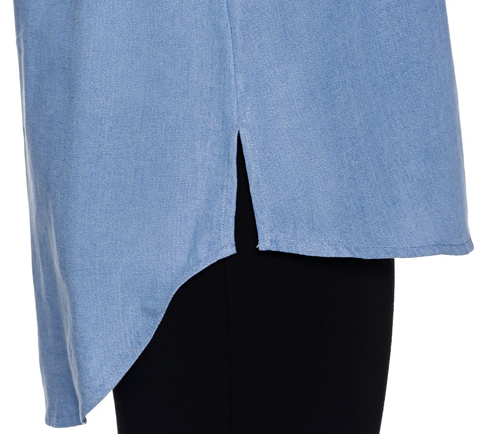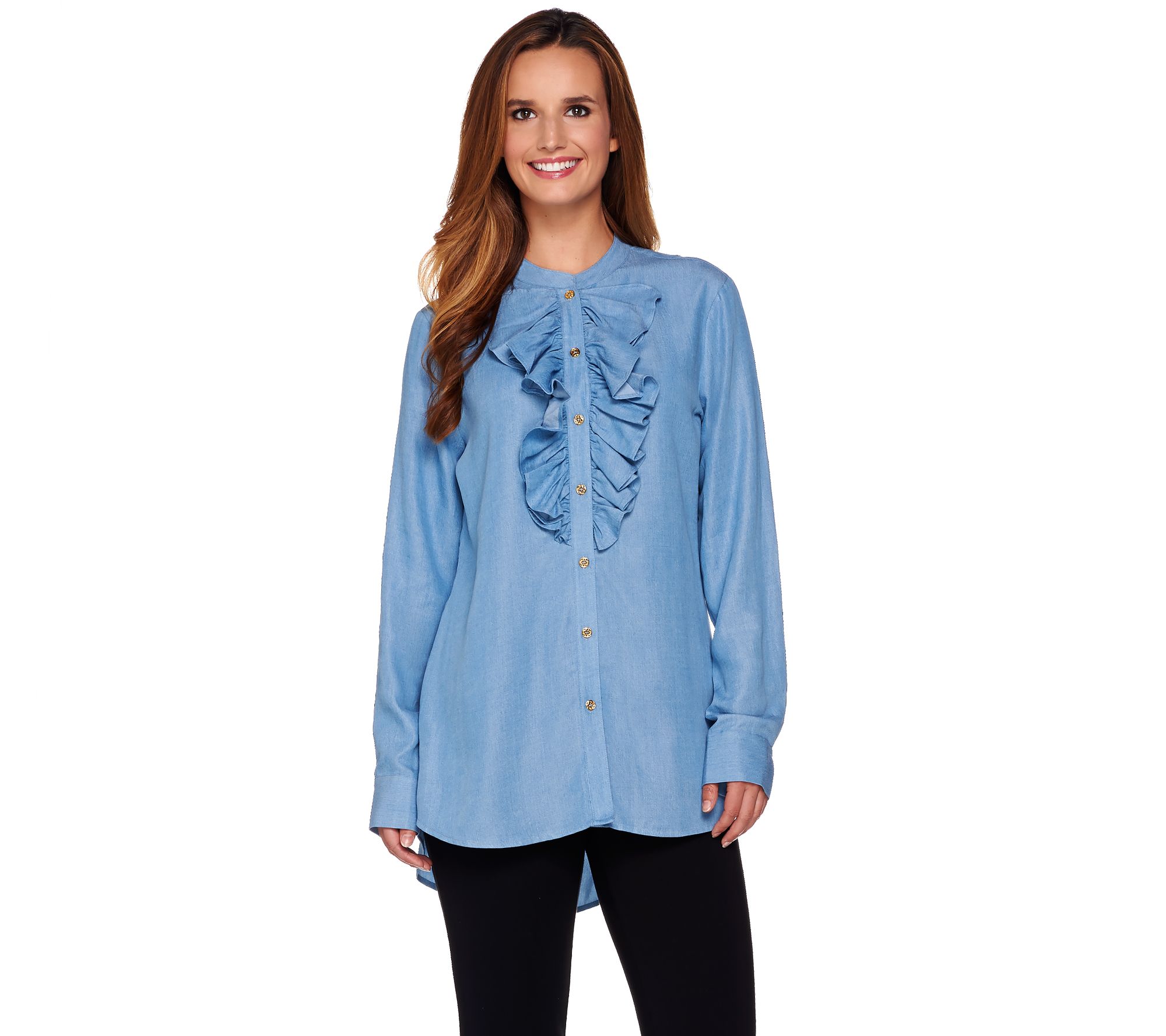 C. Wonder Chambray Button Front Tunic with Ruffle Detail