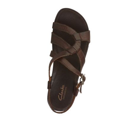 Whether worn with casual shorts or a flirty skirt, these leather sandals are equally stylish. Cross straps along the vamp are distinctive and sassy, while the adjustable side buckle allows you to enjoy a custom fit. From Clarks Footwear.