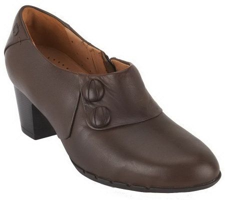 Zip to my Lou. A side zipper offers easy entry into these leather shooties, ideal for a day at the office or a night on the town. A two-button detail and fashionable lower heel add to their everyday appeal. From Clarks.