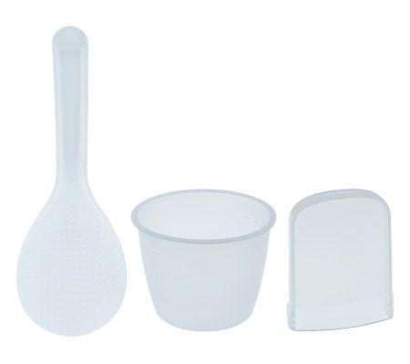 Includes 3-qt pressure cooker, spoon, measuring cup, and recipes