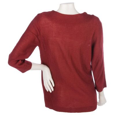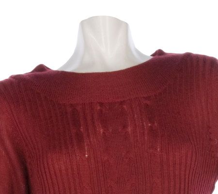 Basically beautiful. The classic cable knit sweater is a staple of every woman's wardrobe, and this 3/4-length sleeve sweater is a prime example of why. Good looks like this never go out of style. From Denim & Co.(R) Fashions.