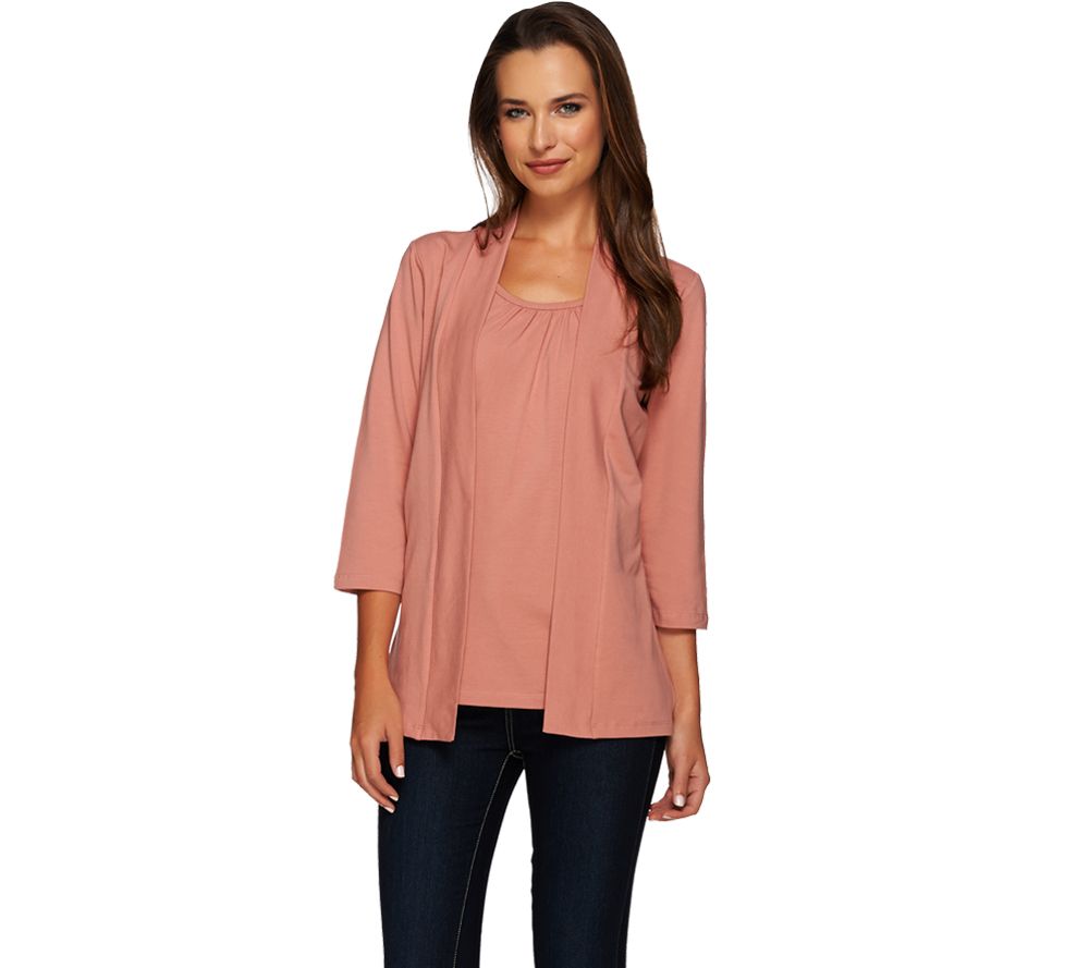 Denim & Co. 3/4 Sleeve Duet Cardigan with Inset Tank