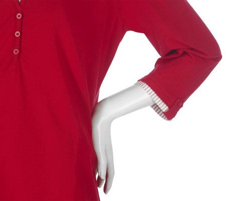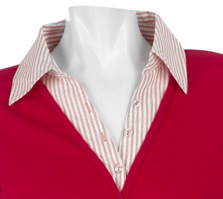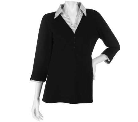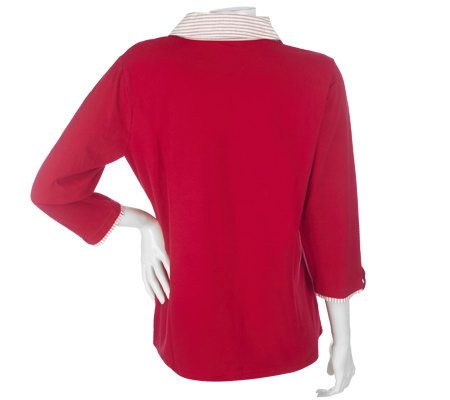 With a basic beauty like this in your closet, getting ready in the morning has never been easier. The striped woven inset on the neck and sleeves provides a casual but professional look. And thanks to the 3/4-length sleeves, you can wear this knit top from one season to the next. From Denim & Co.(R) Fashions.
