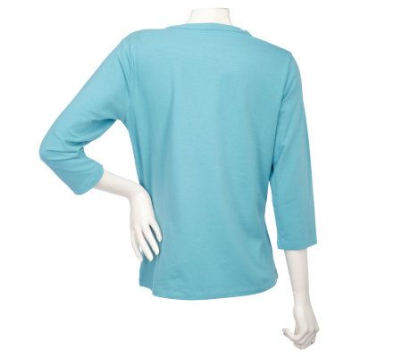 Denim & Co. 3/4 Sleeve Split Neck Top with Embroidery