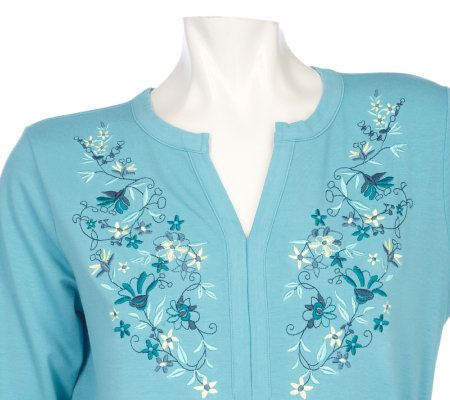 It's all in the details. This sweet top is styled with pretty floral embroidery along the chest and surrounding the neckline for a perfectly feminine look. From Denim & Co.(R) Fashions.