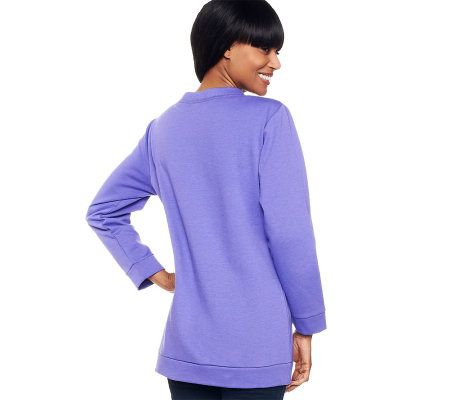 Reach for this oversized sweatshirt when the brisk, crisp air moves in. Ideal for cooler weather, the long sleeves and cozy material keep your body heat in, and the chills out. From Denim & Co.(R) Fashions.
