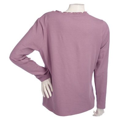 Denim & Co. Essentials Long Sleeve Ruffle Trim V-neck T-shirt