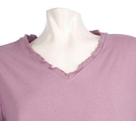 You're never too old for ruffles, and that's evident by this lovely tee. The V-neckline with ruffle trim is perfect for the grownup girl-at-heart. From Denim & Co.(R) Fashions.