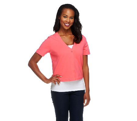 Denim & Co. Essentials Short Sleeve One Button Knit Shrug