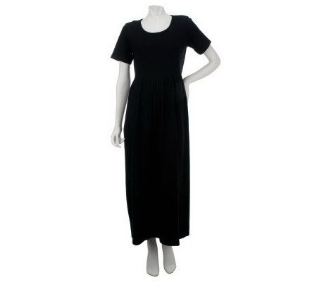 Denim & Co. Short Sleeve Long Length Tuck Front Solid Dress