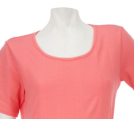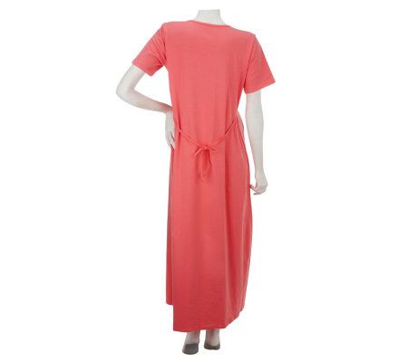 The long and the short of it. The long length and short sleeves of this dress keep it on trend for the season. Relaxed and comfortable, the dress features a back tie and works great with your favorite sandals. From Denim & Co.(R) Fashions.