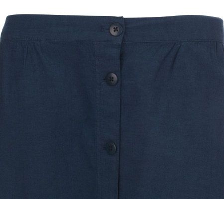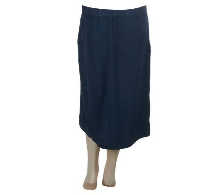 Effortless style. Great with a T-shirt, tank, or blouse, this stretch chambray skirt is a great piece for summer. The lightweight fabric keeps you cool, and the button-front style and elastic waistband keeps you comfortable all season long. From Denim & Co.(R) Fashions.