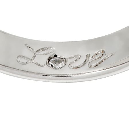 What's not to L-O-V-E about this ring? It radiates with a round cubic zirconia Diamonique(R) simulated diamond that is prong set in a V design, which sparkles itself thanks to round, bead-set Diamonique simulated diamonds. Inscribed inside the shank is the word, "Love", with a burnished-set Diamonique simulated diamond in the letter "o".