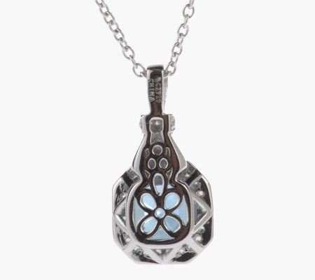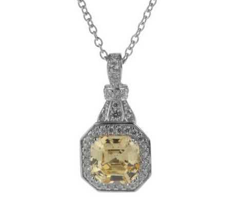 All on eyes on you. This attention-worthy pendant glistens with an Asscher-cut Diamonique(R) simulated diamond in a double prong setting. Round, bead-set Diamonique stones frame the centerpiece, and offer additional sparkle on the bail and the upper part of the pendant. From Epiphany(R) Platinum Clad(R) Sterling Silver and Diamonique Jewelry.