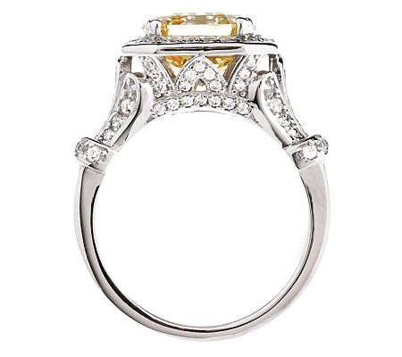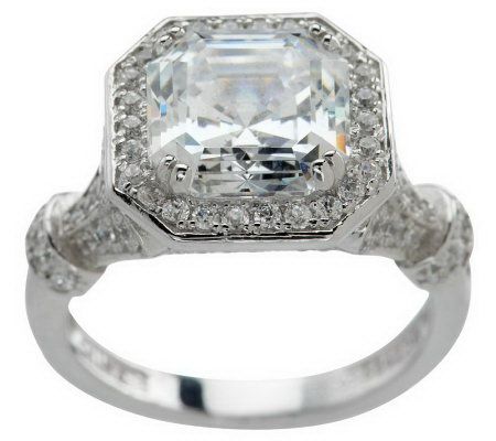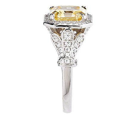 It's a new classic. With an elegant asscher-cut Diamonique(R) simulated diamond at the center illuminated by bead-set Diamonique simulated diamond sparkle, the ring exudes vintage appeal that's universally appreciated and always in style. For added femininity, the fancy openwork gallery mimics the natural curve of flower petals--just exquisite. Choose from three colors--Clear, Canary, or Vivid Blue--for your all-time favorite.
