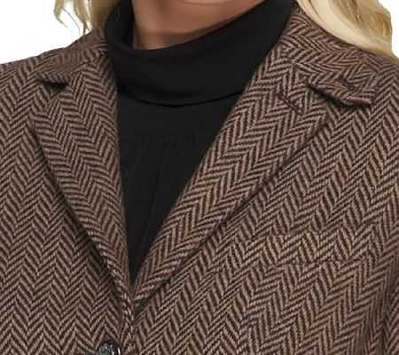 Crisp, classic, cut for the body. Bring out this wool-blend, G.I.L.I. Collection herringbone jacket when you want feminine structure. Thoughtfully designed details like novelty buttons, angled front pockets, and a pointed collar make for a posh presentation. From G.I.L.I. got it love it(R).