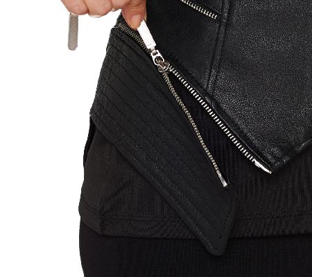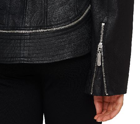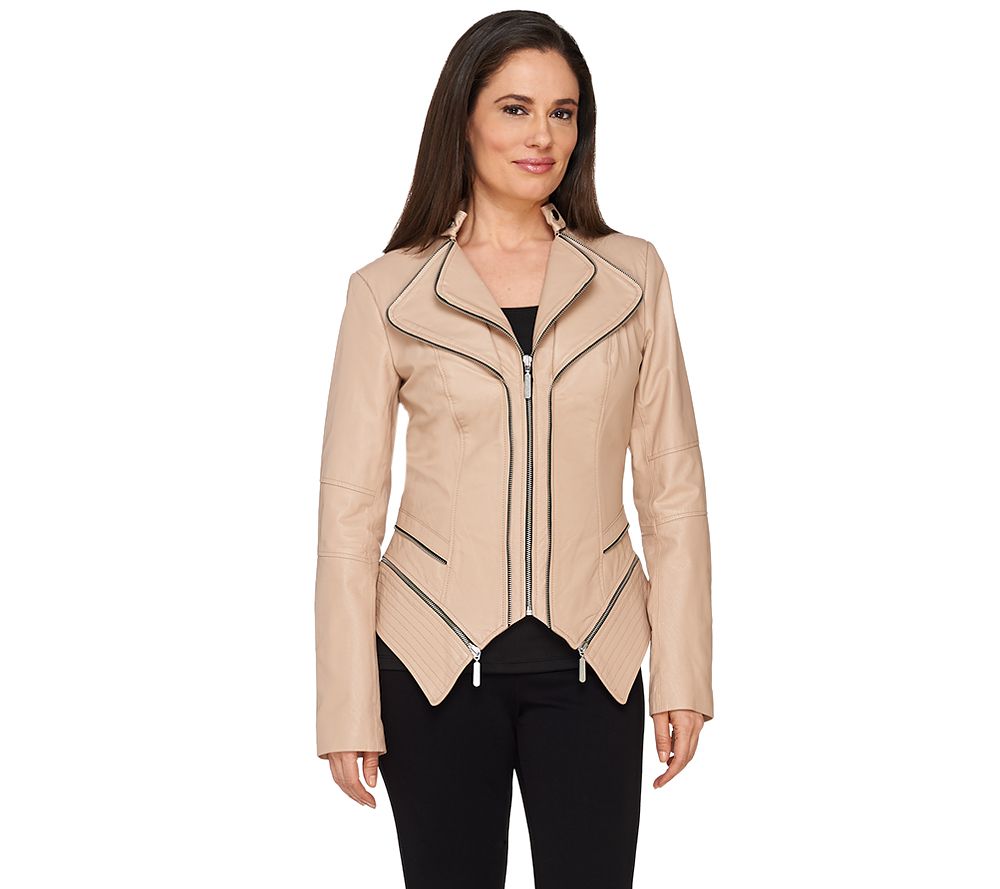 Edgy elegance. This G.I.L.I. leather jacket dons seaming details, a stand collar, and faux zips that offer an authentic aesthetic. From G.I.L.I. got it love it(R).
