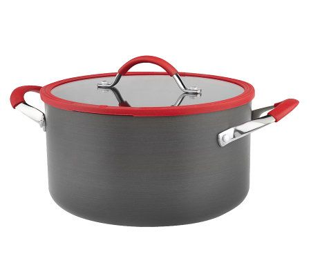 Cool technology meets haute cuisine. This set is constructed of extremely durable, hard anodized aluminum, which distributes heat evenly and is able to withstand temperatures of up to 350 degrees. Whip up delicious soups, stews, pasta, and more in the 6-qt covered stock pot; prepare chicken, fish, vegetables, and meat in the 4-qt covered saute pan, and heat up chilies and sauces at a moment's notice with both the 1.5-qt and 2.5-qt saucepans. You'll also get two open frying pans--8" and 10"--perfect for making scrambled eggs, grilled cheese, and stir-fry.