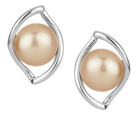 Accentuate your attire with these elegant earrings. A button-shaped cultured freshwater pearl is framed by an openwork sterling silver free-form design. From Honora.