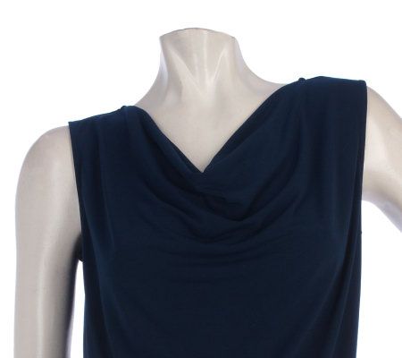 Come out of your shell when you wear this sleek, sleeveless tank top. The draped neckline adds drama, taking this piece from day to night. Fitted to flatter your figure. From the Joan Rivers Classics Collection(R).