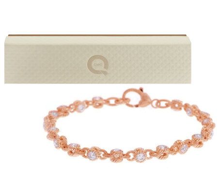 Stations of double-sided, bezel-set round 100-faceted Diamonique simulated diamonds connected by round, textured links; stations alternate in direction to create a rolling effect against the wrist