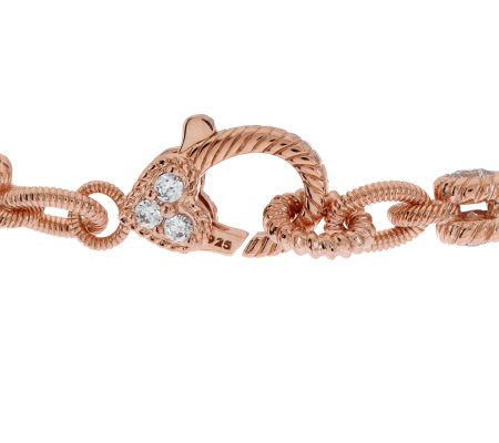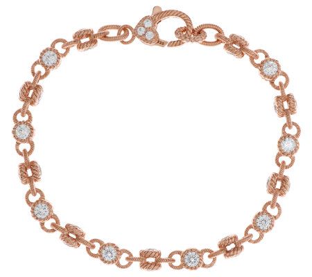 Stations of double-sided, bezel-set round 100-faceted Diamonique(R) simulated diamonds set this bracelet apart. They're connected by round, textured links--and positioned in alternating directions to create a rolling effect against the wrist. From Judith Ripka.