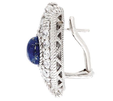 Timeless beauties. Thanks to their classic good looks--a lapis cabochon at the center and Diamonique(R) simulated diamonds throughout--these sterling silver earrings are sure to delight for years to come. From Judith Ripka.