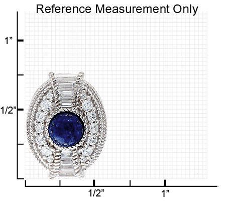 • Oval design with a bezel-set, round lapis cabochon in center; channel-set, tapered baguette Diamonique simulated diamonds run north/south through center; round, bead-set Diamonique simulated diamonds surrounding; rope border motifs