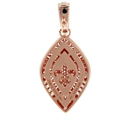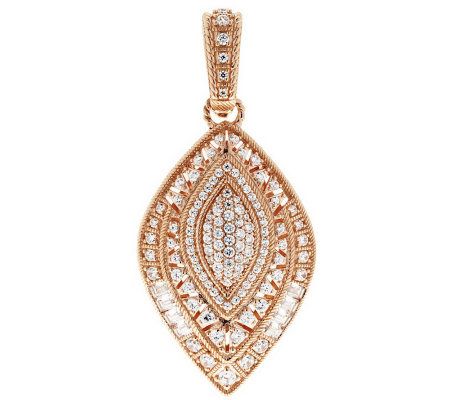 Marquise-shaped; bead-set, round Diamonique simulated diamonds in center surrounded by an open design with prong-set round Diamonique simulated diamonds; semi bezel- and prong-set baguette and round stones along edges; round Diamonique simulated diamonds along bail; angled berge and twisted rope texturing throughout
