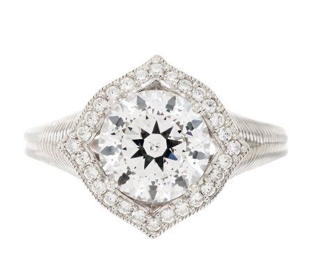 Like the sun shining off the water. This jaw-dropping ring sparkles with a gorgeous collection of Diamonique(R) simulated diamonds. A brilliant, 100-faceted, prong-set Diamonique simulated diamond is highlighted by a remarkable wave-patterned border of bead-set Diamonique simulated diamonds. From Judith Ripka.