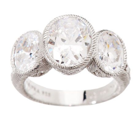 Judith Ripka Sterling 6.15ct Diamonique 3-Stone Oval Bezel Set Ring