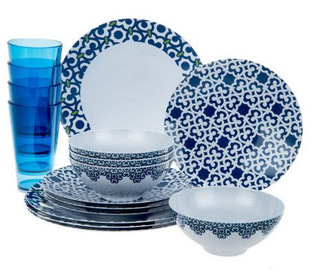 Includes four 11" dinner plates, four 9-1/4" salad plates, four 5-3/4" salad bowls, and four 19-oz highball cups