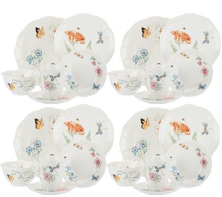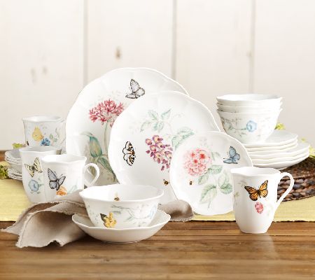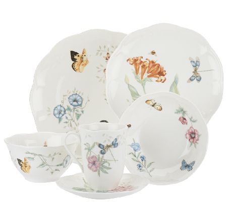 Serve elegance with every meal. This charming Butterfly Meadow Lenox set is a luxury you can't afford to miss. Let the butterflies, bumblebees, and blossoms of this 24-piece fine porcelain collection fill your table with whimsy.