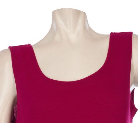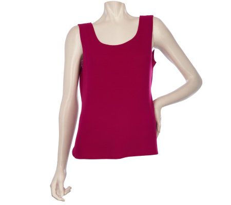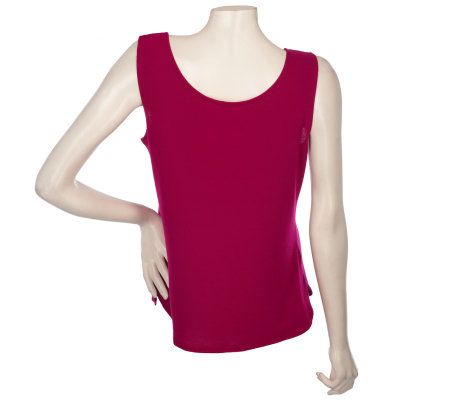 Simply stylish. A sleeveless knit shell makes transitioning from season to season a snap. In cooler months, it can be paired with a jacket or blouse. During the summertime, it's ideal with a skirt or shorts. This piece takes a slightly different turn with a rounded hem and neckline. From Motto(R) Fashions.