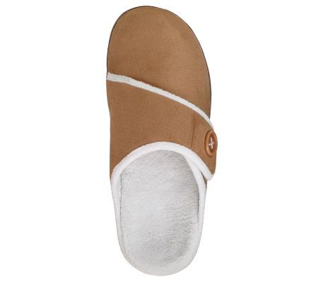 Comfort and joy. Step into the holiday season in complete comfort thanks to this cozy mule-style slipper. With helpful features like built-in arch support and an adjustable vamp, the Shawn slip-on has the same great orthotics you've come to know and love, with the added warmth of a plush slipper!